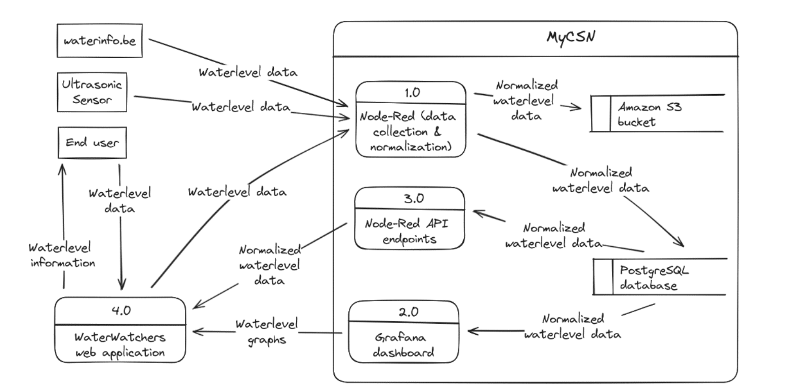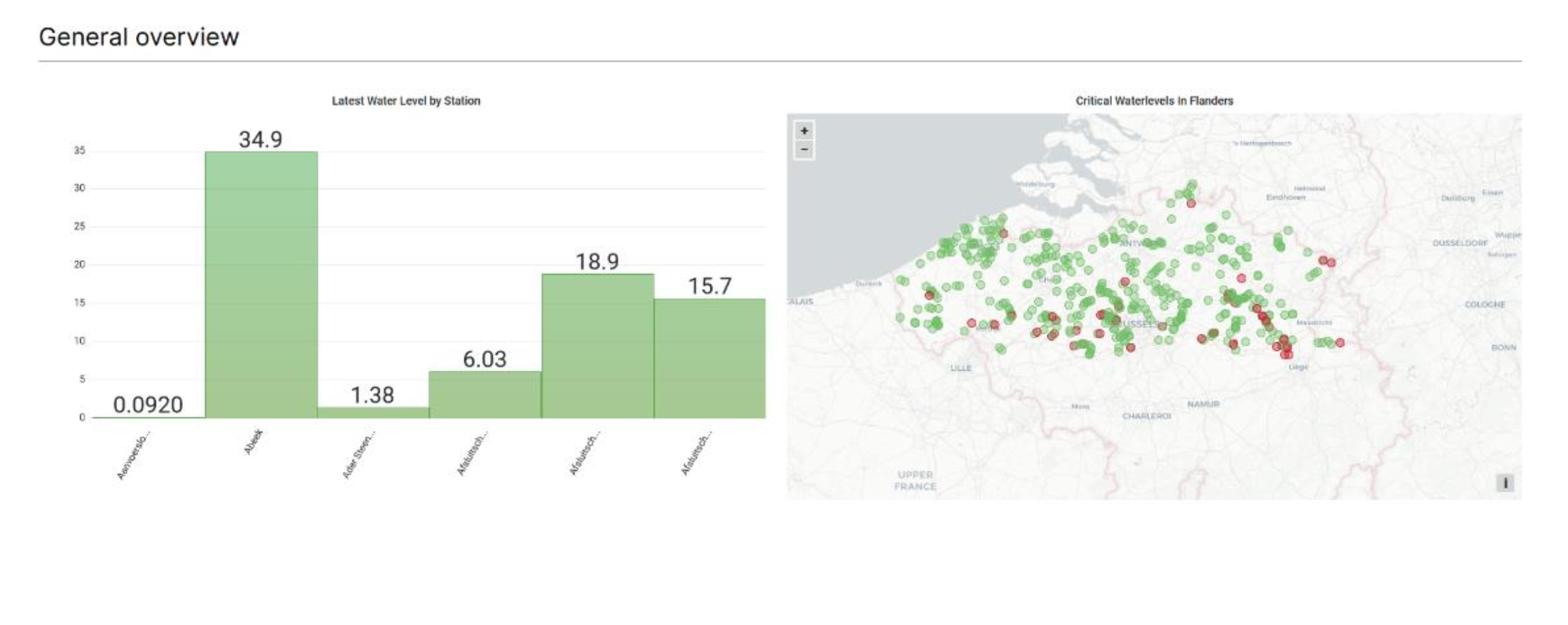 This project addresses the critical issue of decentralized and un-normalized water level data in Flanders, which hinders effective flood management. The solution is a comprehensive system that collects data from sources like waterinfo.be and custom sensors, normalizes it using OSLO standards, and stores it in a centralized PostgreSQL database. The primary output is a Grafana dashboard, accessible via a web application, which provides local governments with clear visualizations to enable swifter, more accurate decisions for flood prevention.