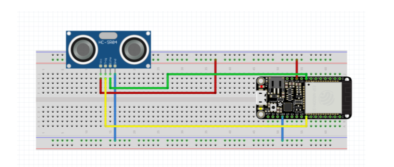 Due to difficulties in accessing data from the Meratch sensor, the team developed its own DIY sensor solution. This solution uses an ultrasonic sensor to measure the distance between the device and a surface. The sensor connects to an ESP32 Dev Kit which provides power and handles data processing. The microcontroller computes the data and sends it to an MQTT topic on Node-Red. The DIY sensor was quickly built on a breadboard for simplicity.