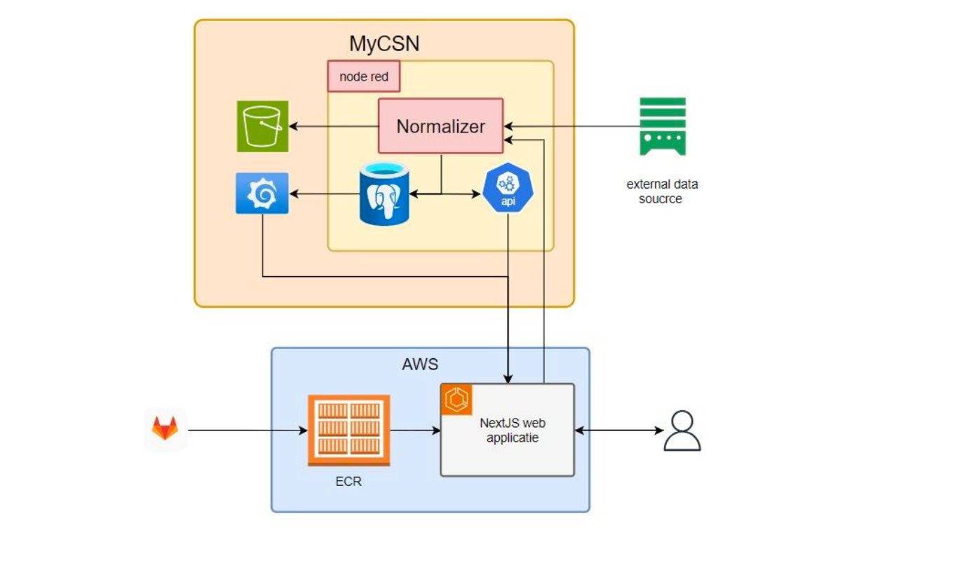 The web application's architecture is hosted directly on AWS whiles the backend relies on my CSN, which is Cipals own internal tool hosted also on Amazon Web Services (AWS) for ensuring scalability, security, reliability, and performance.